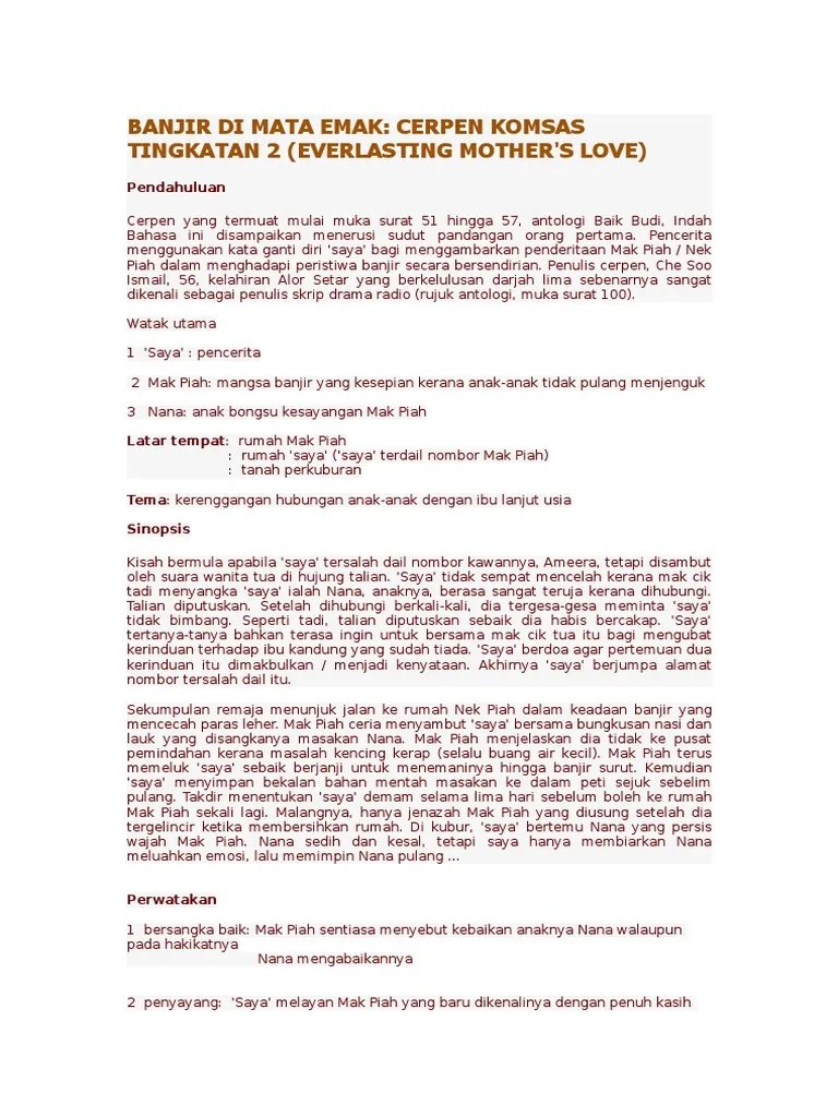 Sinopsis Banjir Di Mata Emak Tingkatan 2 - Cerpen Banjir Di Mata Emak K Nota Komsas Tingkatan 2 Bumi Gemilang. Cerpen banjir di mata emak ialah komsas tingkatan 2. Komponen sastera dan novel bm / bahasa melayu. Cerita berkisar pada watak "saya" yang hendak menelefon temannya tetapi tersalah tekan nombor telefon rumah mak piah. Sinopsis cerpen banjir di mata emak. Novel bm / bahasa melayu tingkatan 2, pt3 (pentaksiran tingkatan 3). Nota tawanan komander caucasus sinopsis mengikut bab: Nota justeru impian di jaring sinopsis mengikut bab: Puisi tradisional pantun alam remaja.